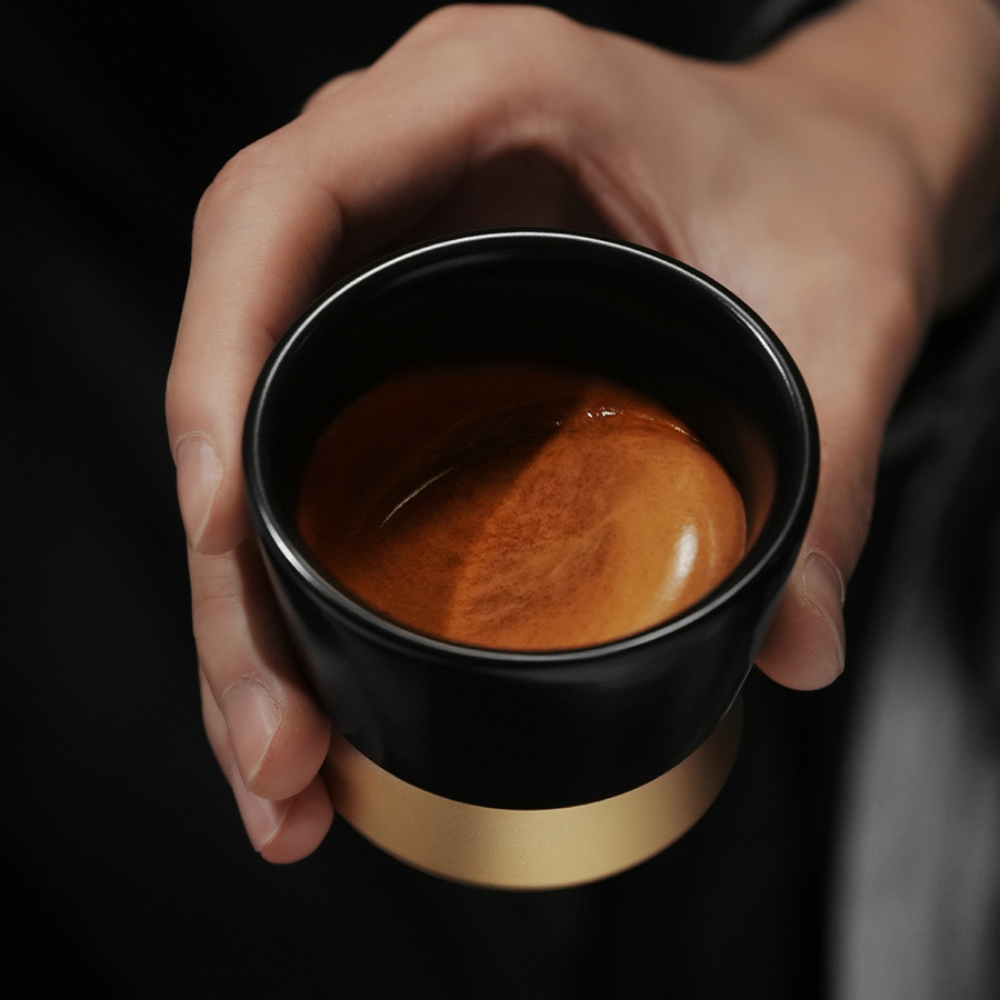 С вместимост от 80 мл, чашата е подходяща за еспресо и други ароматни кафета. Комбинацията от керамика и алуминиева сплав осигурява едновременно стабилност и визуална изтънченост.