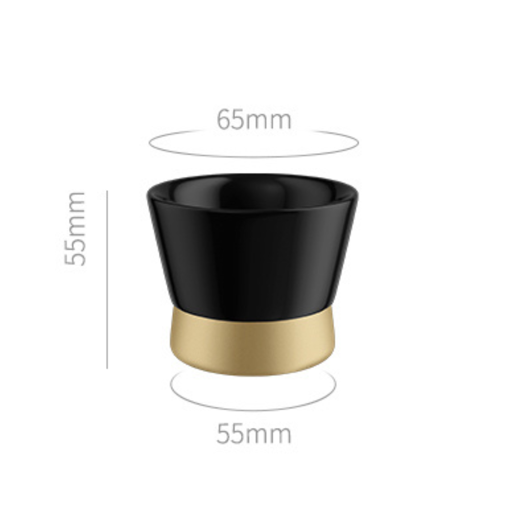 Цветно контрастното дъно с метален елемент и керамично тяло в елегантно черно придава модерен и луксозен акцент – идеален за дома, офиса или кафенето.
